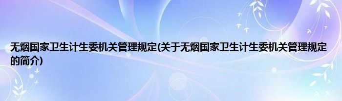 本文关于无烟国家卫生计生委机关管理规定的简介就讲解完毕,希望对大家有所帮助。