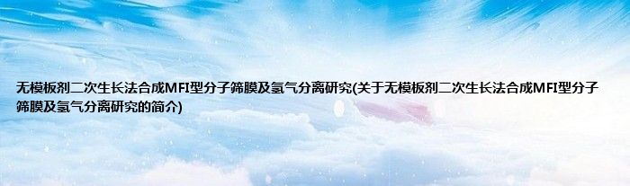 本文关于无模板剂二次生长法合成MFI型分子筛膜及氢气分离研究的简介就讲解完毕,希望对大家有所帮助。