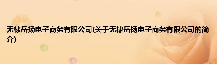 本文关于无棣岳扬电子商务有限公司的简介就讲解完毕,希望对大家有所帮助。