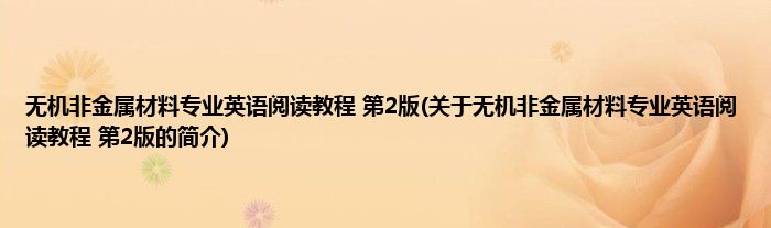 本文关于无机非金属材料专业英语阅读教程 第2版的简介就讲解完毕,希望对大家有所帮助。