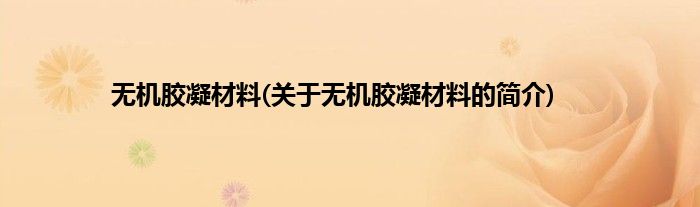 本文关于无机胶凝材料的简介就讲解完毕,希望对大家有所帮助。