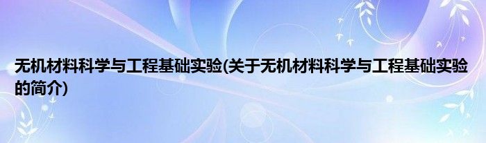 本文关于无机材料科学与工程基础实验的简介就讲解完毕,希望对大家有所帮助。