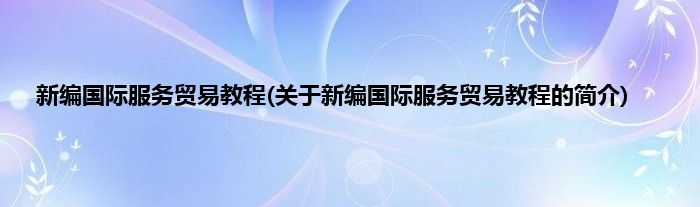 大家好,新编国际服务贸易教程,关于新编国际服务贸易教程的简介很多人还不知道,现在让我们一起来看看吧!