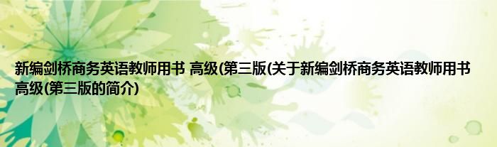 大家好,新编剑桥商务英语教师用书 高级,第三版,关于新编剑桥商务英语教师用书 高级,第三版的简介很多人还不知道,现在让我们一起来看看吧!
