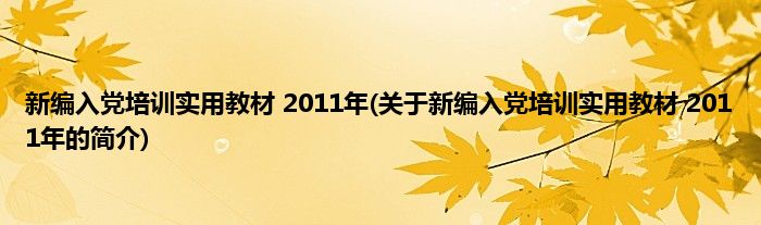 大家好,新编入党培训实用教材 2011年,关于新编入党培训实用教材 2011年的简介很多人还不知道,现在让我们一起来看看吧!