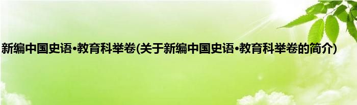 本文关于新编中国史语·教育科举卷的简介就讲解完毕,希望对大家有所帮助。