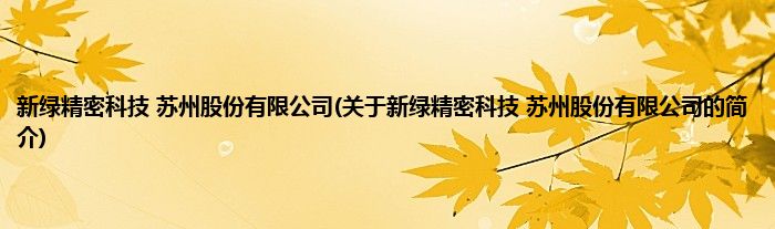 本文关于新绿精密科技 苏州股份有限公司的简介就讲解完毕,希望对大家有所帮助。