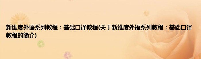 本文关于新维度外语系列教程:基础口译教程的简介就讲解完毕,希望对大家有所帮助。