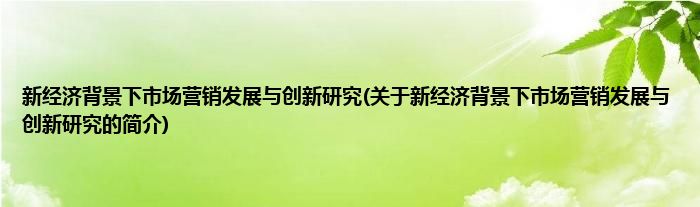 本文关于新经济背景下市场营销发展与创新研究的简介就讲解完毕,希望对大家有所帮助。