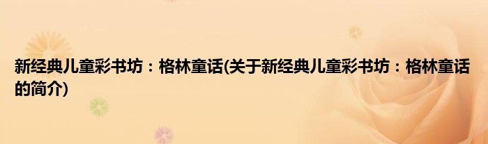 本文关于新经典儿童彩书坊:格林童话的简介就讲解完毕,希望对大家有所帮助。