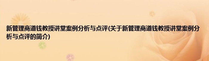 本文关于新管理商道钱教授讲堂案例分析与点评的简介就讲解完毕,希望对大家有所帮助。