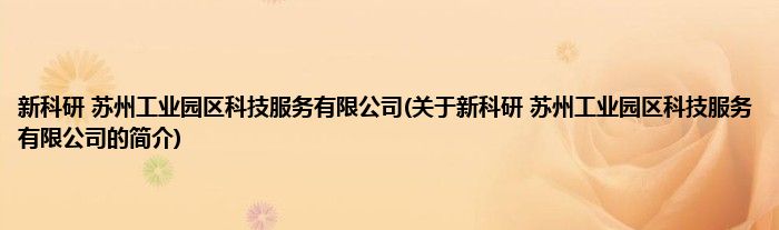 本文关于新科研 苏州工业园区科技服务有限公司的简介就讲解完毕,希望对大家有所帮助。
