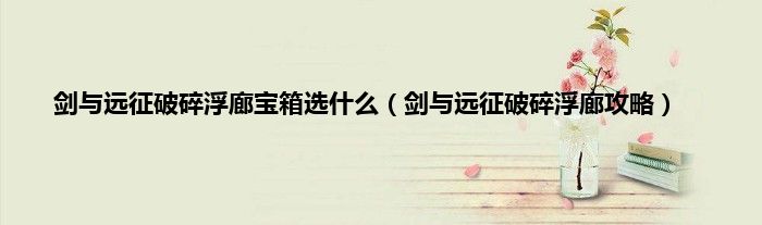 大家好,精选小编来为大家解答以上问题。剑与远征破碎浮廊宝箱选什么,剑与远征破碎浮廊攻略很多人还不知道,现在让我们一起来看看吧!