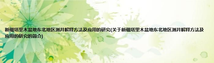 本文关于新疆塔里木盆地东北地区测井解释方法及应用的研究的简介就讲解完毕,希望对大家有所帮助。