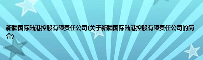 本文关于新疆国际陆港控股有限责任公司的简介就讲解完毕,希望对大家有所帮助。