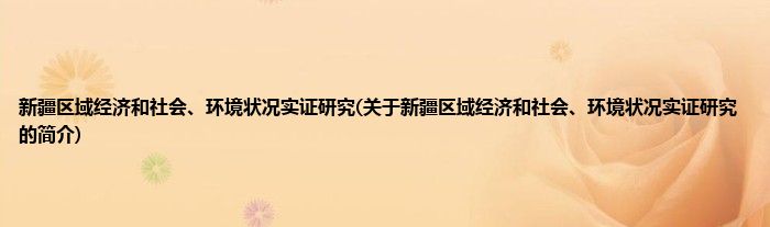 大家好,新疆区域经济和社会、环境状况实证研究,关于新疆区域经济和社会、环境状况实证研究的简介很多人还不知道,现在让我们一起来看看吧!