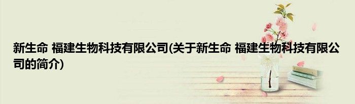 本文关于新生命 福建生物科技有限公司的简介就讲解完毕,希望对大家有所帮助。