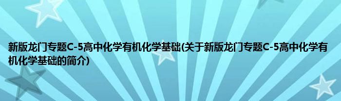 本文关于新版龙门专题C-5高中化学有机化学基础的简介就讲解完毕,希望对大家有所帮助。