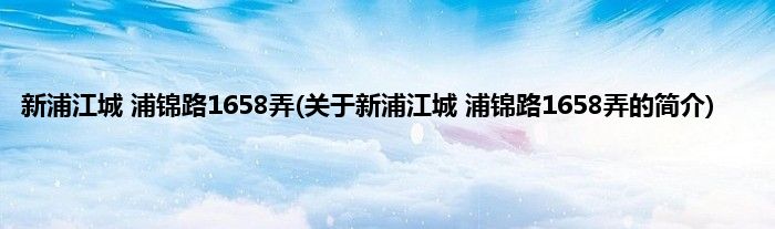本文关于新浦江城 浦锦路1658弄的简介就讲解完毕,希望对大家有所帮助。