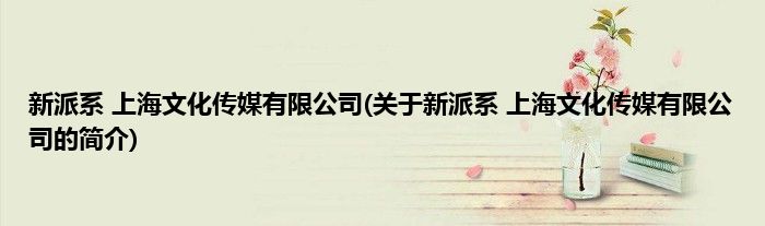 本文关于新派系 上海文化传媒有限公司的简介就讲解完毕,希望对大家有所帮助。