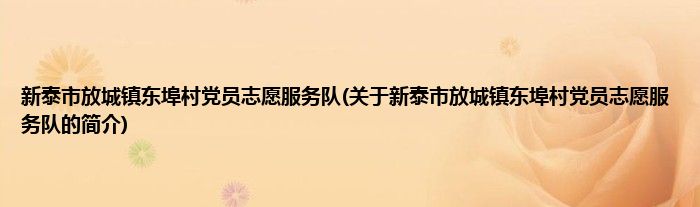 大家好,新泰市放城镇东埠村党员志愿服务队,关于新泰市放城镇东埠村党员志愿服务队的简介很多人还不知道,现在让我们一起来看看吧!
