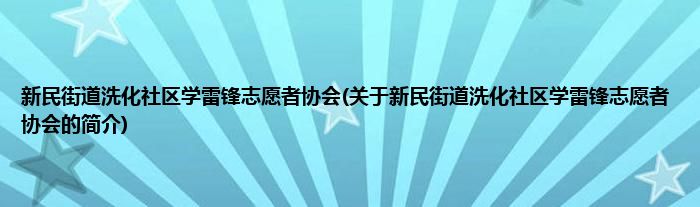 1、 新民街道洗化社区学雷锋志愿者协会是由新民街道学雷锋志愿者协会领导下的志愿团体。