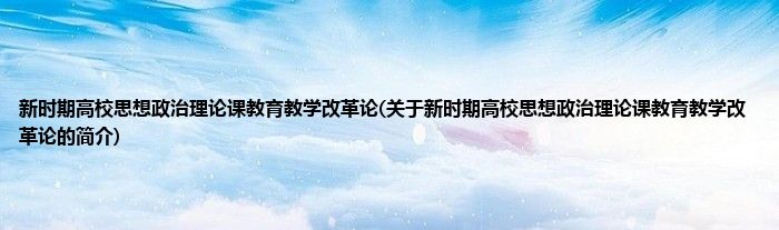 本文关于新时期高校思想政治理论课教育教学改革论的简介就讲解完毕,希望对大家有所帮助。