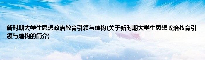 大家好,新时期大学生思想政治教育引领与建构,关于新时期大学生思想政治教育引领与建构的简介很多人还不知道,现在让我们一起来看看吧!