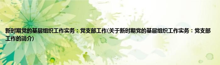 本文关于新时期党的基层组织工作实务:党支部工作的简介就讲解完毕,希望对大家有所帮助。