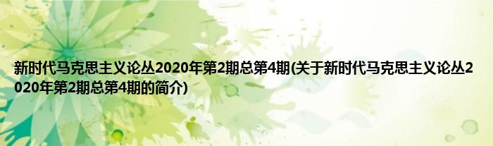 1、 《新时代马克思主义论丛2020年第2期总第4期》是2020年社会科学文献出版社出版的图书。