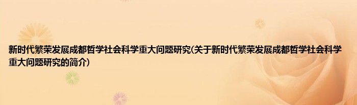 本文关于新时代繁荣发展成都哲学社会科学重大问题研究的简介就讲解完毕,希望对大家有所帮助。