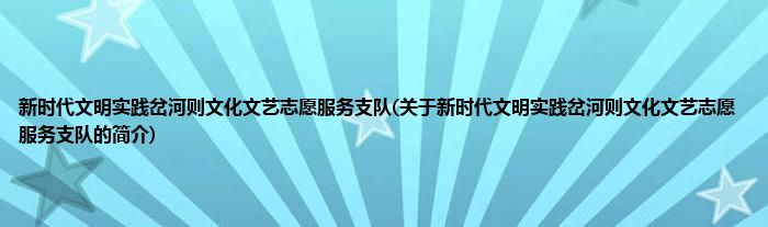 本文关于新时代文明实践岔河则文化文艺志愿服务支队的简介就讲解完毕,希望对大家有所帮助。