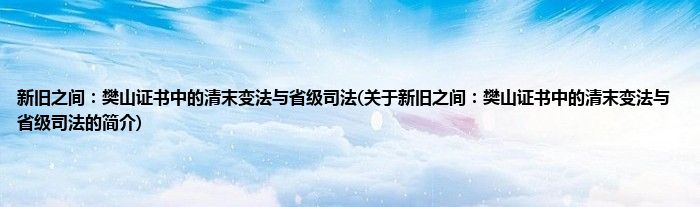 本文关于新旧之间:樊山证书中的清末变法与省级司法的简介就讲解完毕,希望对大家有所帮助。