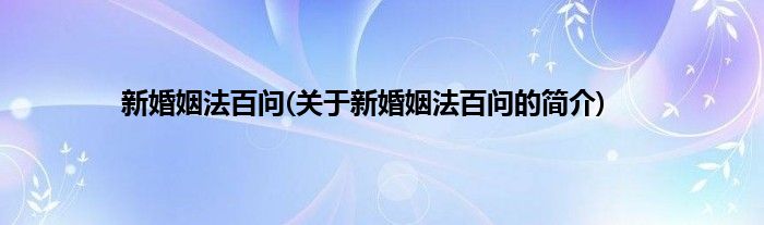 本文关于新婚姻法百问的简介就讲解完毕,希望对大家有所帮助。