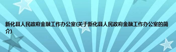 本文关于新化县人民政府金融工作办公室的简介就讲解完毕,希望对大家有所帮助。