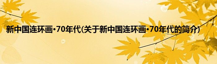本文关于新中国连环画·70年代的简介就讲解完毕,希望对大家有所帮助。