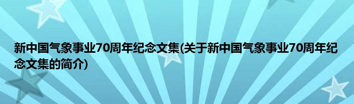 本文关于新中国气象事业70周年纪念文集的简介就讲解完毕,希望对大家有所帮助。