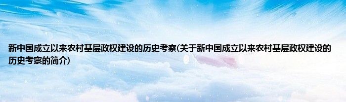 本文关于新中国成立以来农村基层政权建设的历史考察的简介就讲解完毕,希望对大家有所帮助。