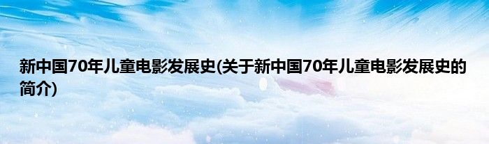 本文关于新中国70年儿童电影发展史的简介就讲解完毕,希望对大家有所帮助。