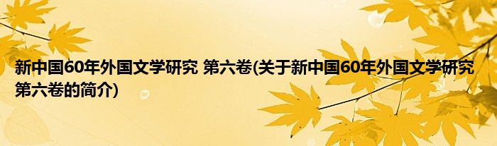 本文关于新中国60年外国文学研究 第六卷的简介就讲解完毕,希望对大家有所帮助。