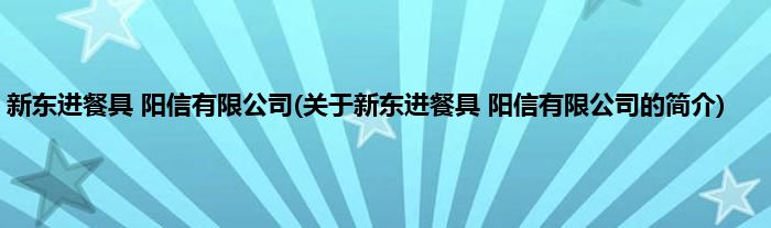 大家好,新东进餐具 阳信有限公司,关于新东进餐具 阳信有限公司的简介很多人还不知道,现在让我们一起来看看吧!