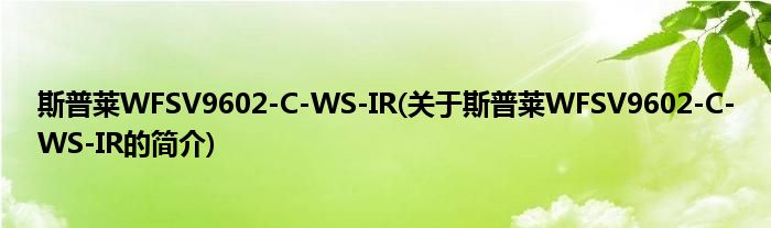 本文关于斯普莱WFSV9602-C-WS-IR的简介就讲解完毕,希望对大家有所帮助。