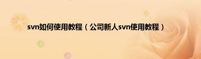 大家好,精选小编来为大家解答以上问题。svn如何使用教程,公司新人svn使用教程很多人还不知道,现在让我们一起来看看吧!