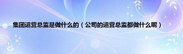 大家好,小常来为大家解答以上问题。集团运营总监是做什么的,公司的运营总监都做什么呢很多人还不知道,现在让我们一起来看看吧!