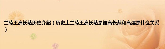 大家好,小常来为大家解答以上问题。兰陵王高长恭历史介绍,历史上兰陵王高长恭是谁高长恭和高湛是什么关系很多人还不知道,现在让我们一起来看看吧!
