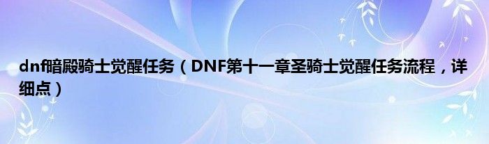 大家好,小常来为大家解答以上问题。dnf暗殿骑士觉醒任务,DNF第十一章圣骑士觉醒任务流程,详细点很多人还不知道,现在让我们一起来看看吧!