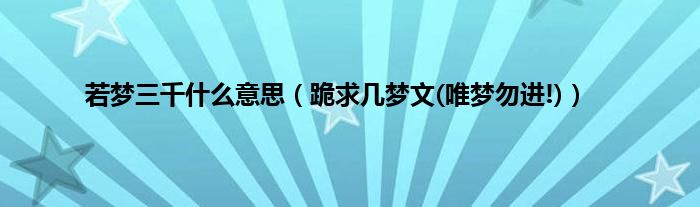 大家好,小常来为大家解答以上问题。若梦三千什么意思,跪求几梦文(唯梦勿进!)很多人还不知道,现在让我们一起来看看吧!