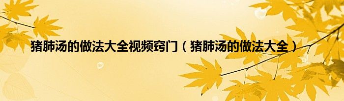 大家好,小科来为大家解答以上问题。猪肺汤的做法大全视频窍门,猪肺汤的做法大全很多人还不知道,现在让我们一起来看看吧!