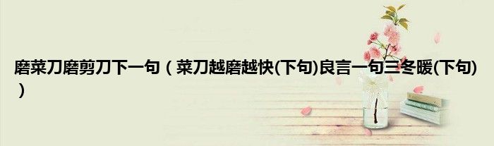 大家好,小常来为大家解答以上问题。磨菜刀磨剪刀下一句,菜刀越磨越快(下句)良言一句三冬暖(下句)很多人还不知道,现在让我们一起来看看吧!