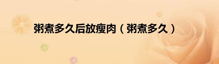 大家好,小科来为大家解答以上问题。粥煮多久后放瘦肉,粥煮多久很多人还不知道,现在让我们一起来看看吧!